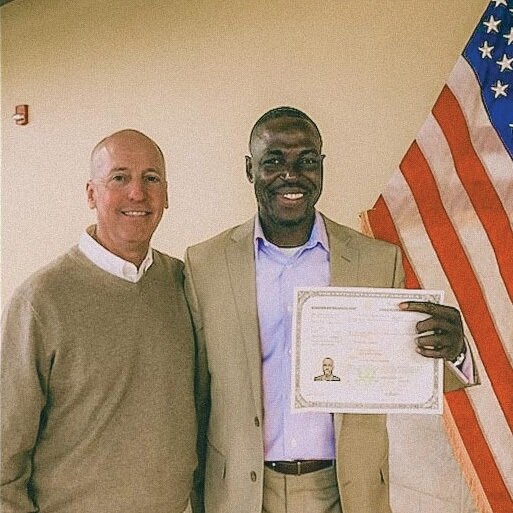In addition to coaching in English, John mentored Parfait and helped him navigate a new culture. Fast forward to today: Parfait is a US citizen. Through hustle and determination, he’s worked his way up from janitorial work to a position in IT. He and his wife just celebrated their seventh wedding anniversary. They own a home that’s filled with the laughter of their four children.